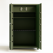 The Ironwood Verdant Guardian 18 Gun Safe is designed for those who demand the best. This premium, forest-green safe features a reinforced steel body, recessed door with full-length hinge bar, and multi-point chrome boltwork for formidable pry resistance. Inside, adjustable shelving, a barrel-rest rail, and dual locking steel drawers keep valuables organized and protected, while the satin interior and clean layout elevate any space.